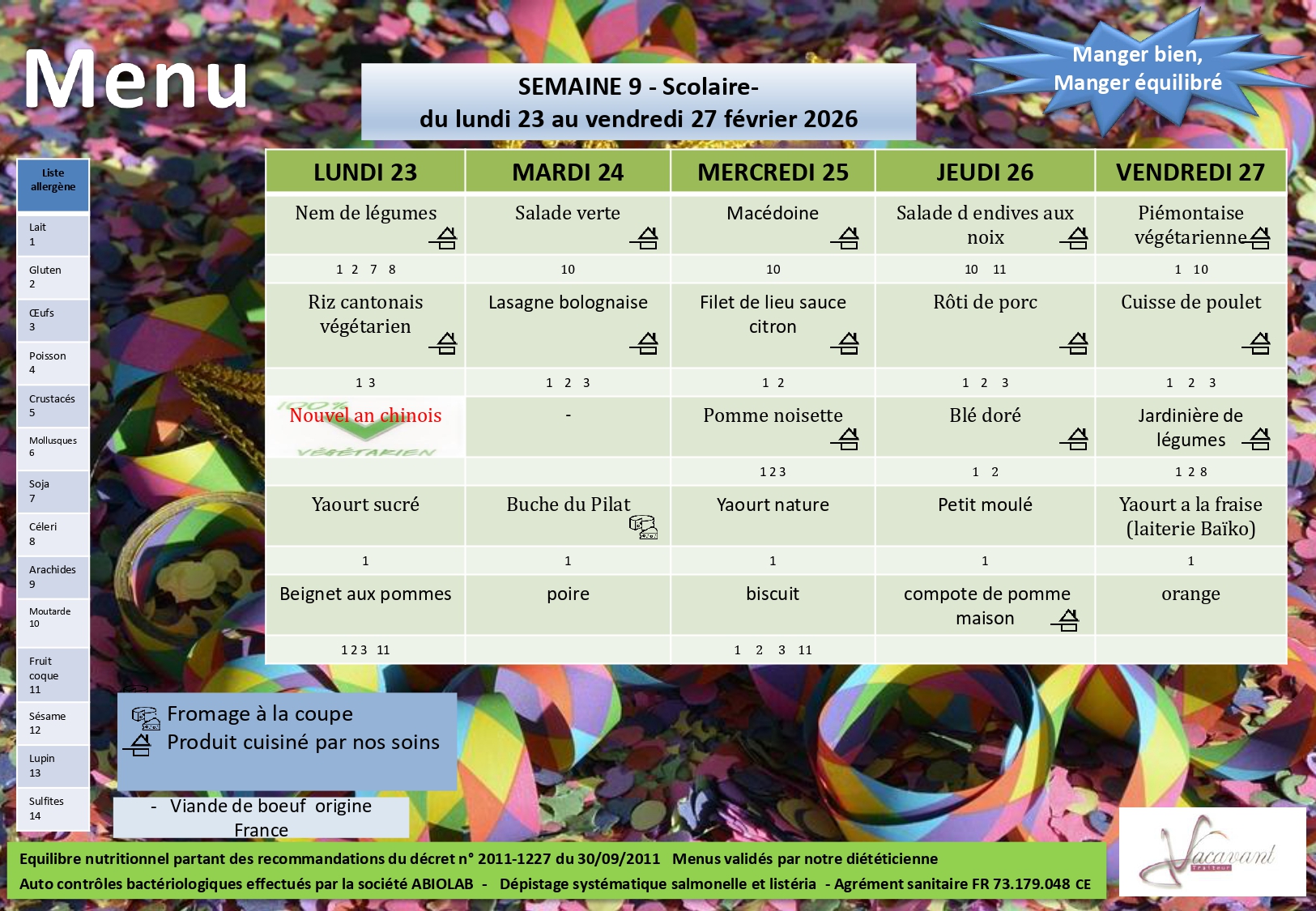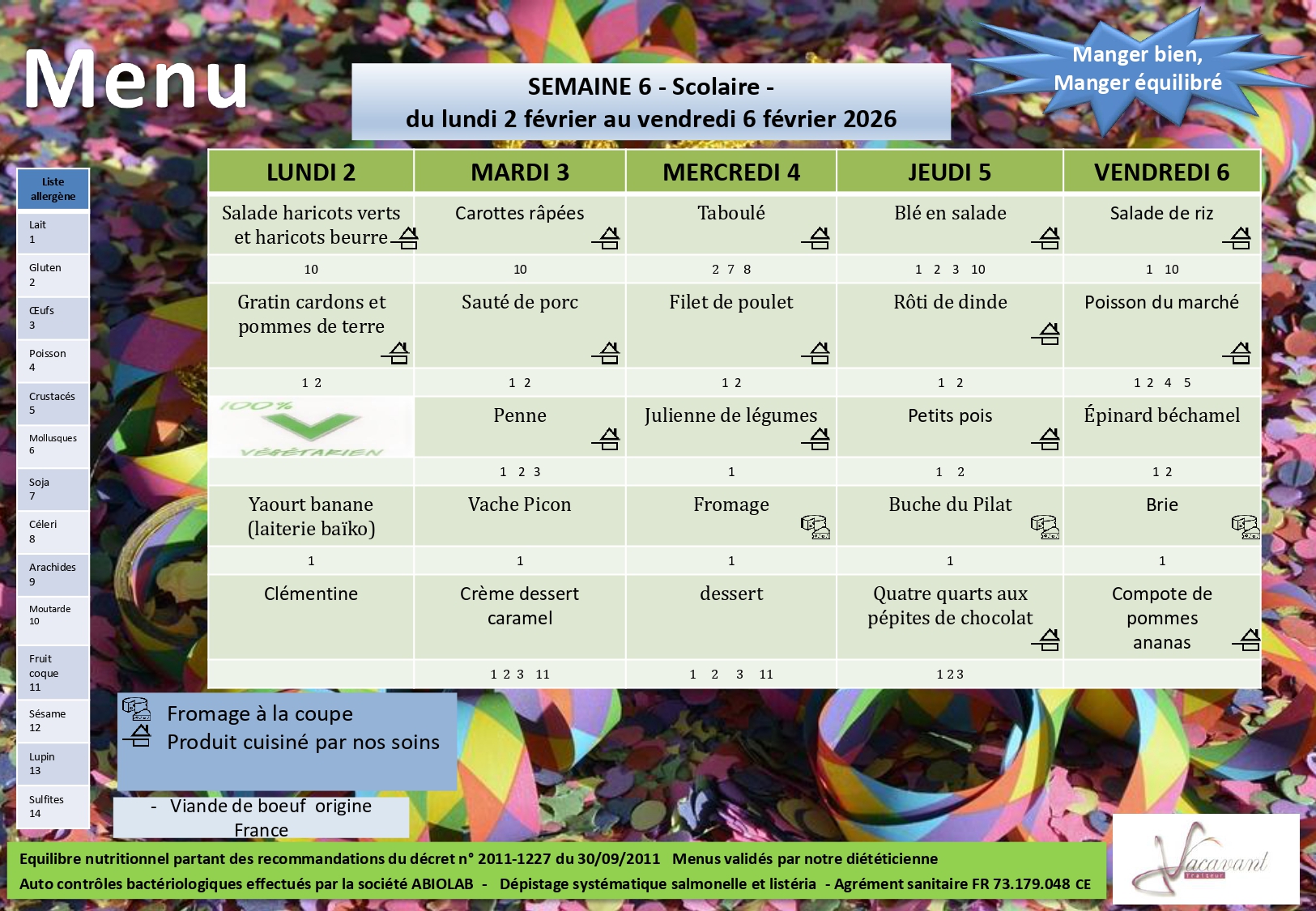 MENUS CANTINE :